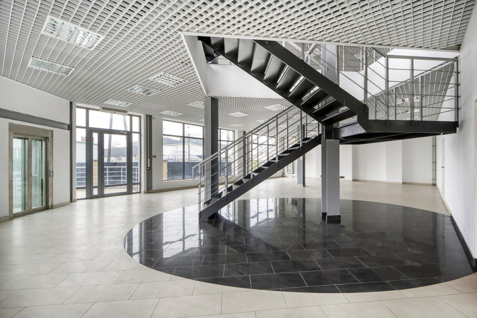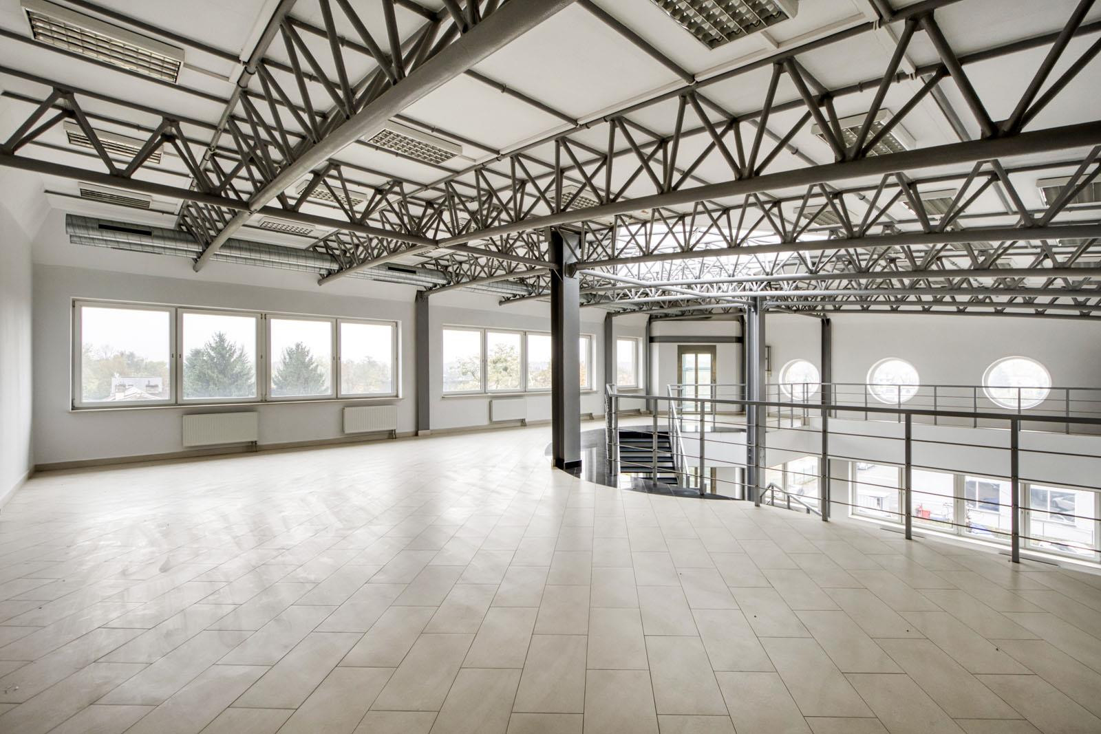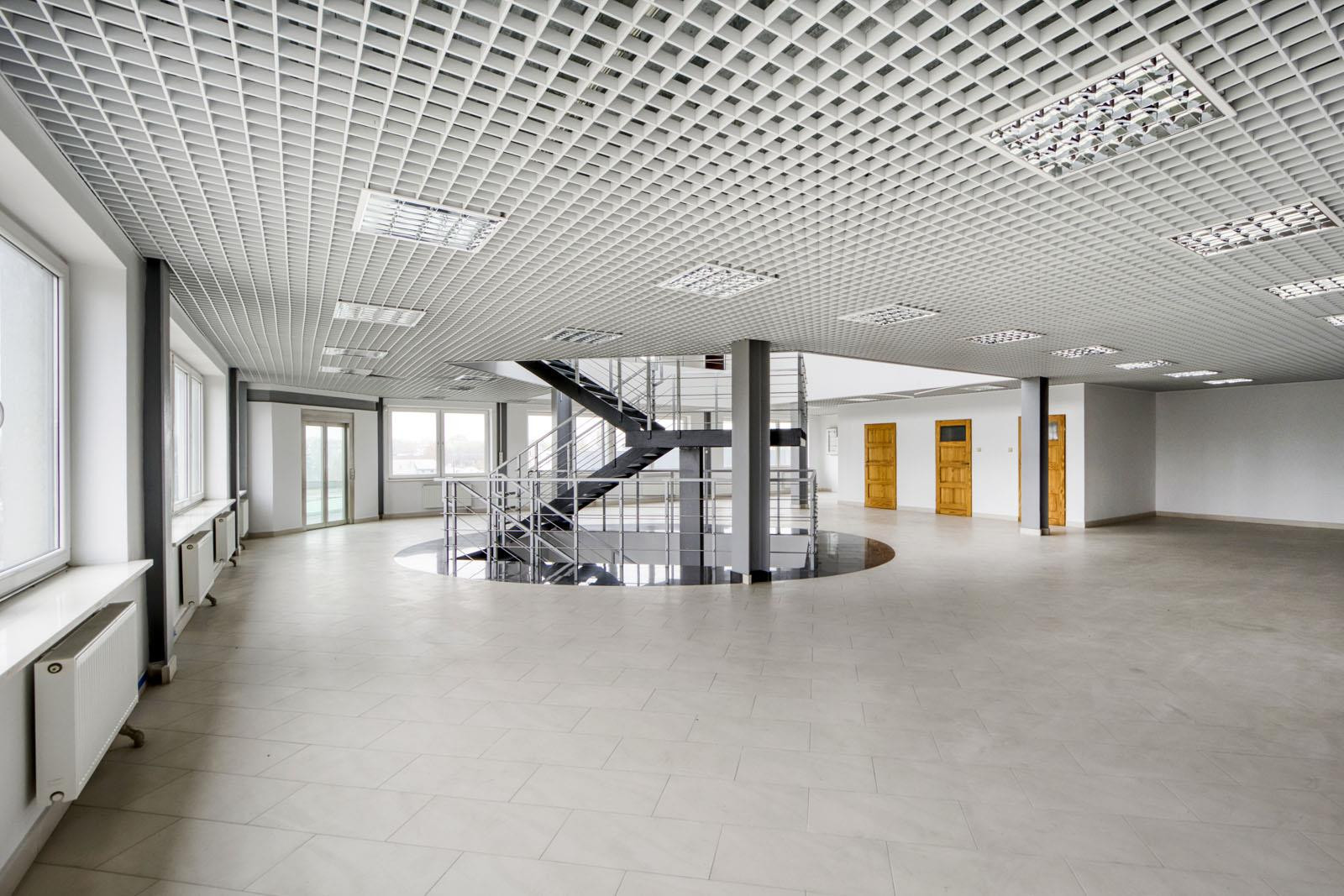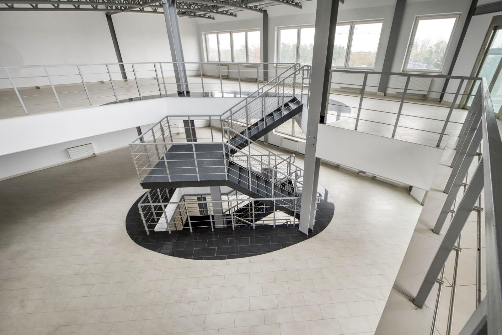 Komunikacja wewnątrz nieruchomości odbywa się za pomocą wewnętrznej klatki schodowej oraz przeszklonej windy widocznej na zdjęciach. Na 1szym piętrze znajduje się przejście z budynku biurowego na antresolę hali.