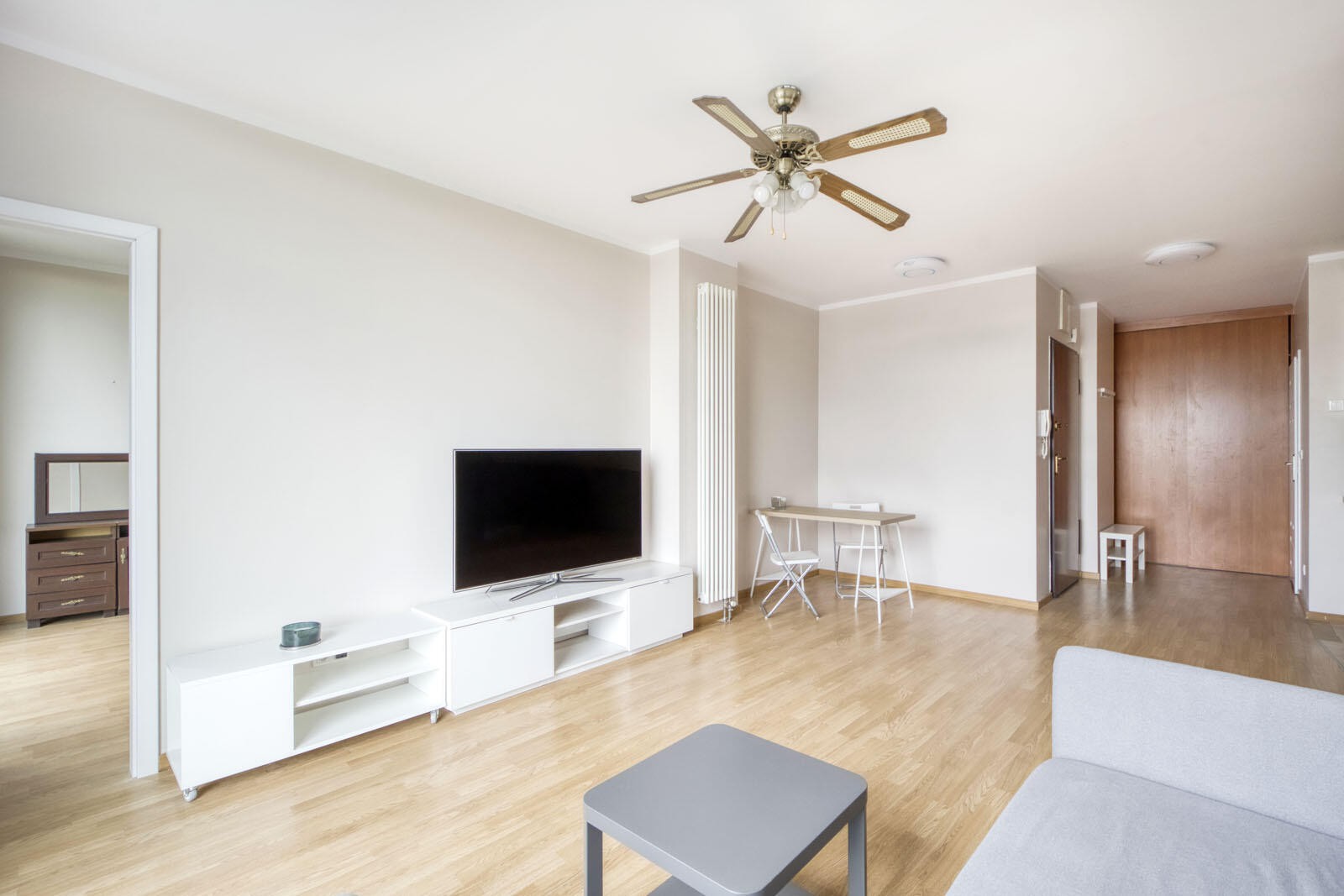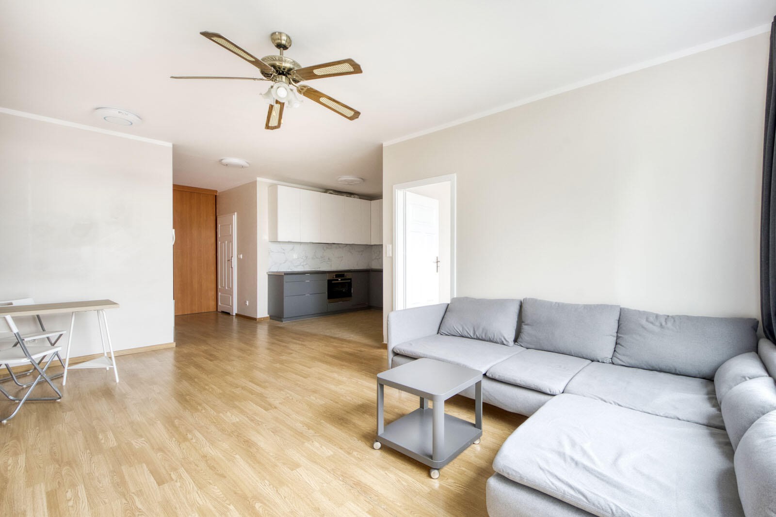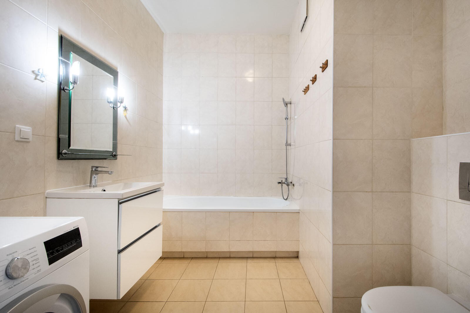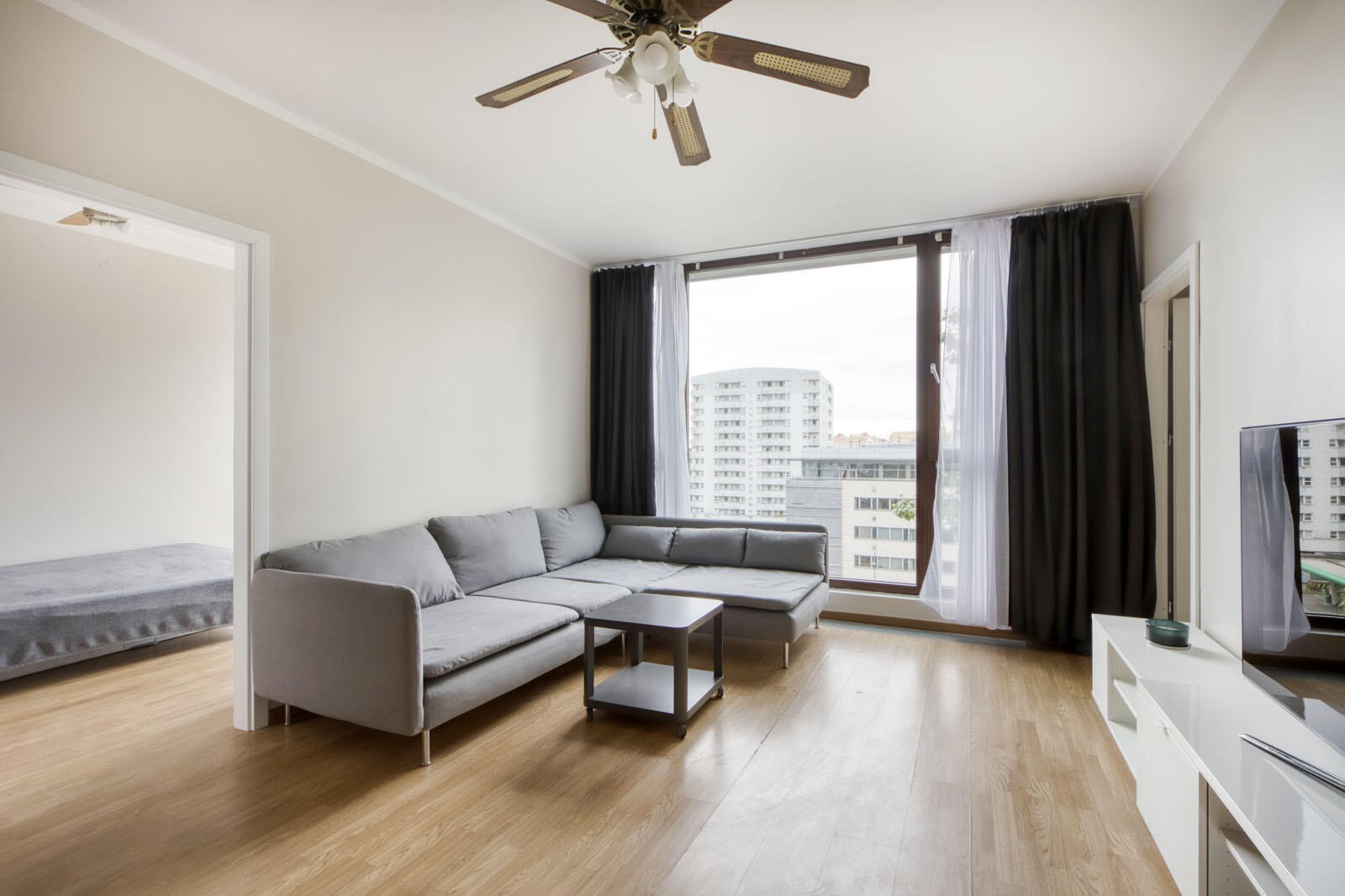 Mieszkanie o powierzchni 68,60 m2 składa się z przestronnego salonu połączonego z jadalnią i wydzielonym aneksem kuchennym. Do dyspozycji mieszkańców jest również hall, z którego wchodzimy do przestronnej łazienki oraz dwie sypialnie główna w której istnieje możliwość wydzielenia dodatkowej oddzielnej garderoby oraz mniejsza położona po drugiej stronie salonu. Dużym atutem mieszkania są panoramiczne okna z widokiem z wysokiego piętra. Do mieszkania przynależy dodatkowo miejsce postojowe (płatne dodatkowo 50 000 zł).