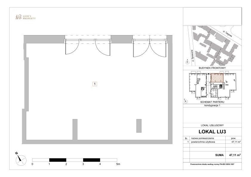 Prezentowana przestrzeń oferuje 47,11 m2 ergonomicznej powierzchni zlokalizowanej na parterze budynku.
