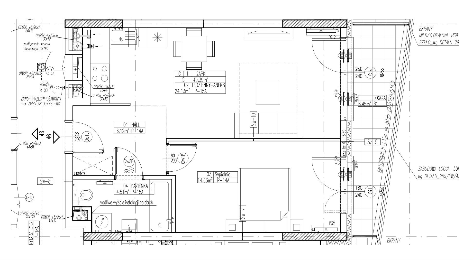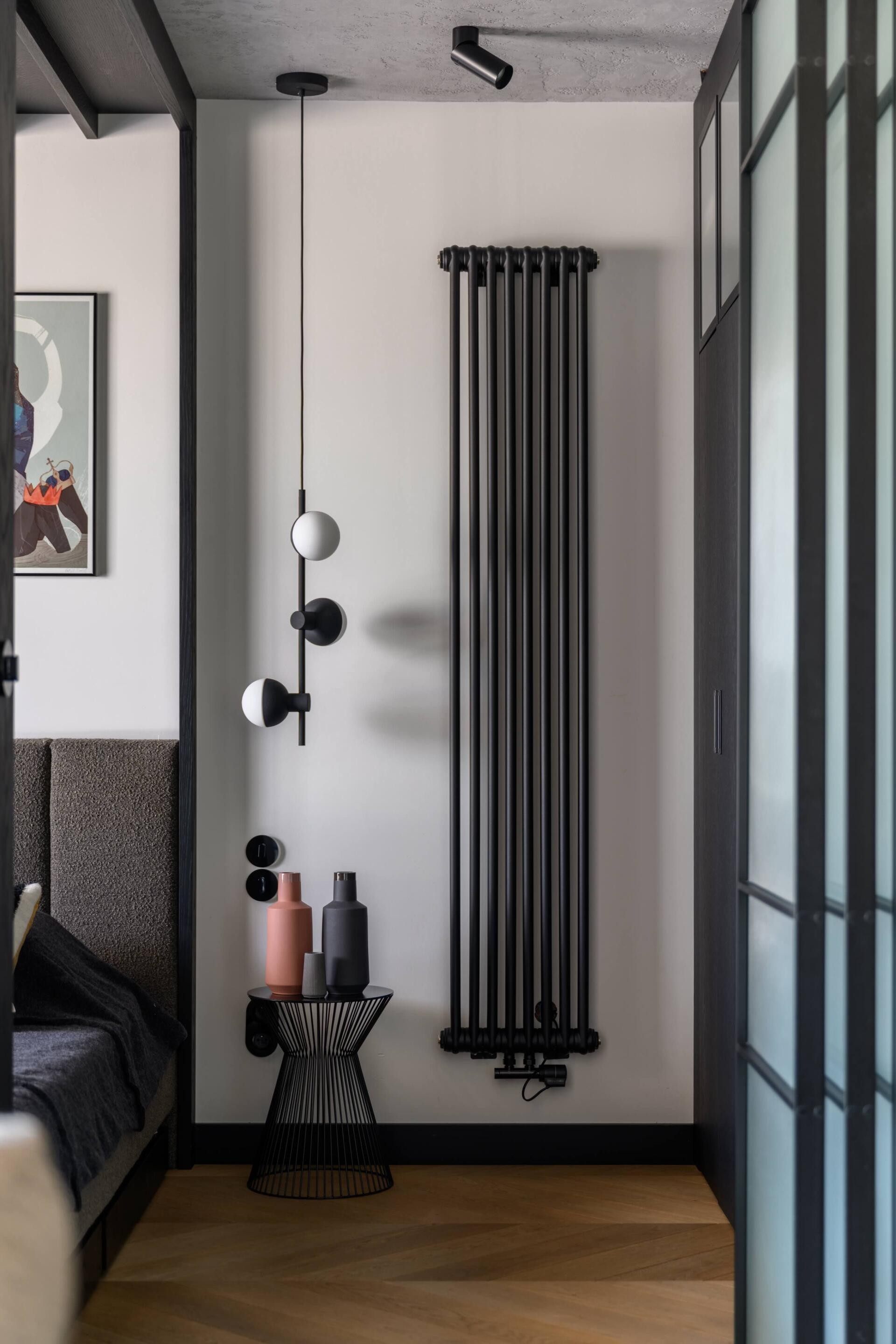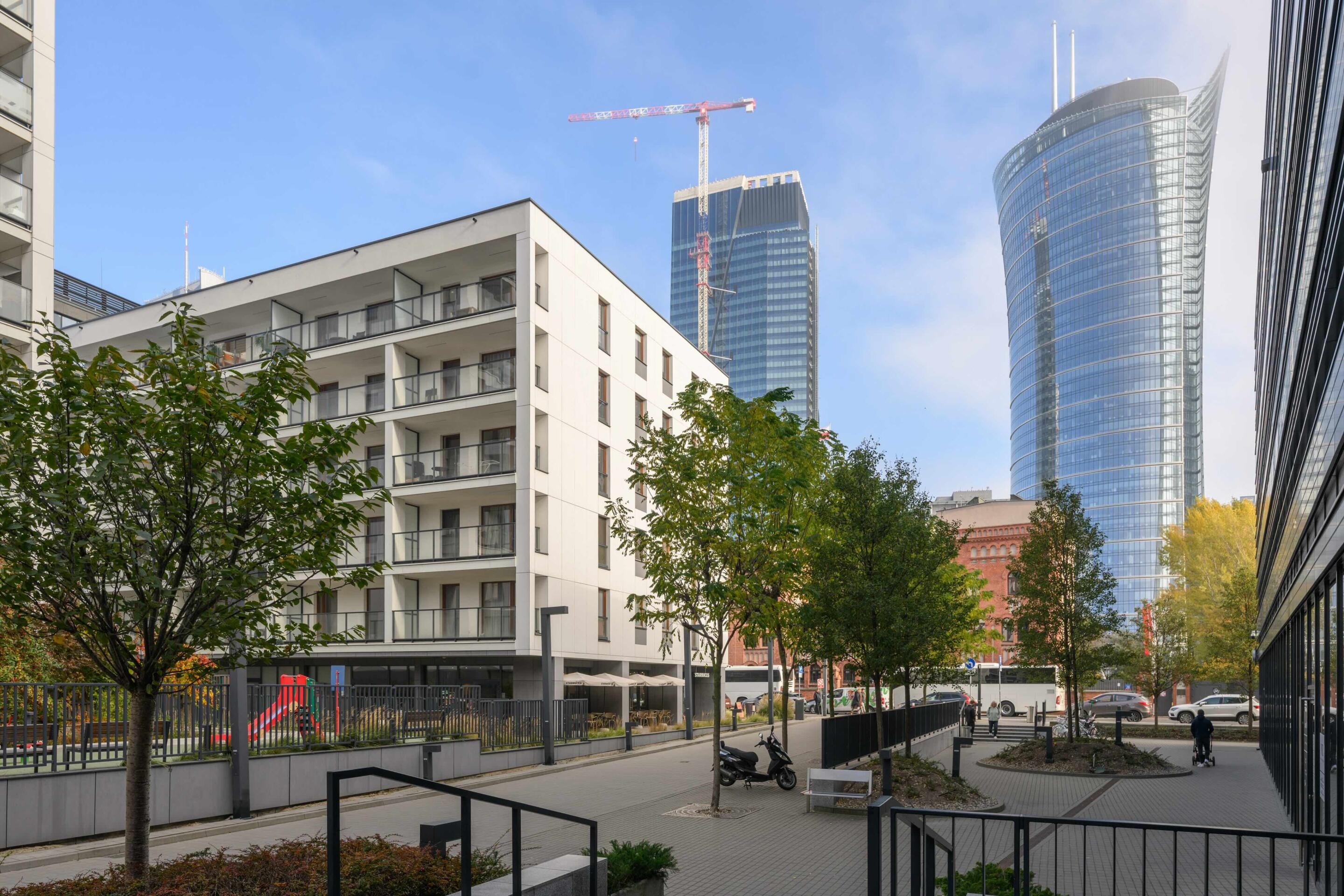 To nowoczesne i designerskie mieszkanie o powierzchni 50 m², położone jest na ostatnim piętrze kameralnego budynku przy ul. Przyokopowej (ulica odchodząca od ul. Grzybowskiej), z widokiem na Muzeum Powstania Warszawskiego i skyline rozciągający się wokół Ronda Daszyńskiego.